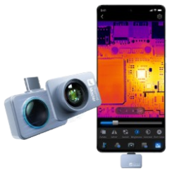 Termocamera ultracompatta per smartphone che si focalizza specificamente sulla micro-elettronica e sulla diagnostica di precisione. La messa a fuoco ravvicinata e la misurazione precisa di piccoli componenti sono il suo punto di forza. E’ pensata per individuare guasti, cortocircuiti o surriscaldamenti anomali sui componenti microscopici. E’ una termocamera specializzata pensata per i professionisti della riparazione e della diagnostica elettronica che necessitano di una precisione millimetrica.